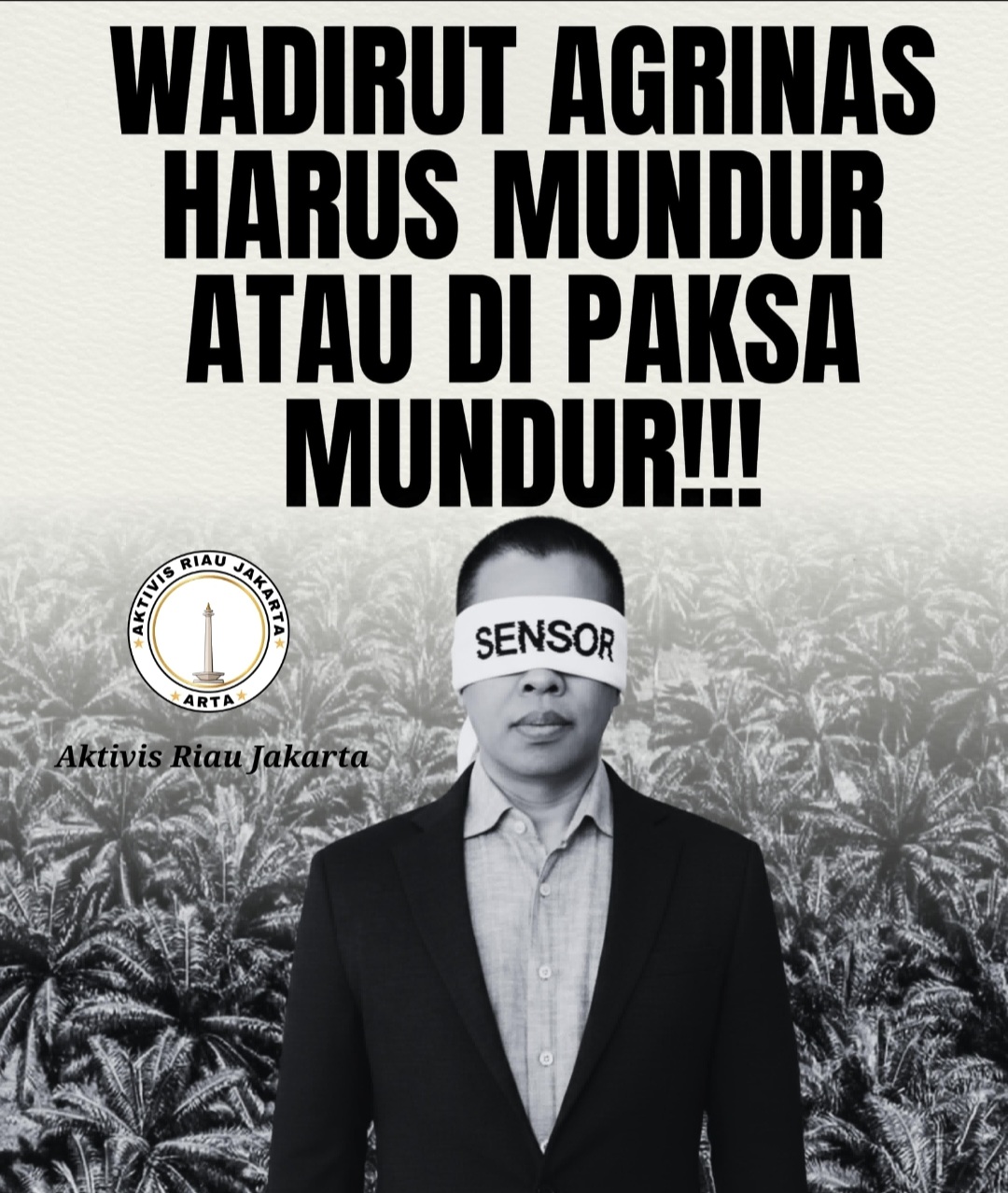 Koordinator Aksi ARTA, Arya Putra Fertana menyampaikan, bahwa masyarakat yang tergabung dalam Aktivis Riau Jakarta Para pendemo tersebut menyampaikan tuntutan seperti meminta Presiden Prabowo Subianto untuk mencopot Wadirut Agrinas berinisial KSK, mendesak Wadirut PT Agrinas Palma Nusantara untuk mundur dari jabatannya atau akan di paksa mundur, mendesak KPK untuk menangkap seluruh oknum direksi berinisial KSK yang diduga melakukan tindak pidana korupsi Rp 180 miliar di PT. Agrinas Palma Nusantara, mendesak PT Agrinas Palma Nusantara untuk untuk tidak mengembalikan lahan sitaan satgas PKH kepada pemilik perusahaan lama dan lainnya.