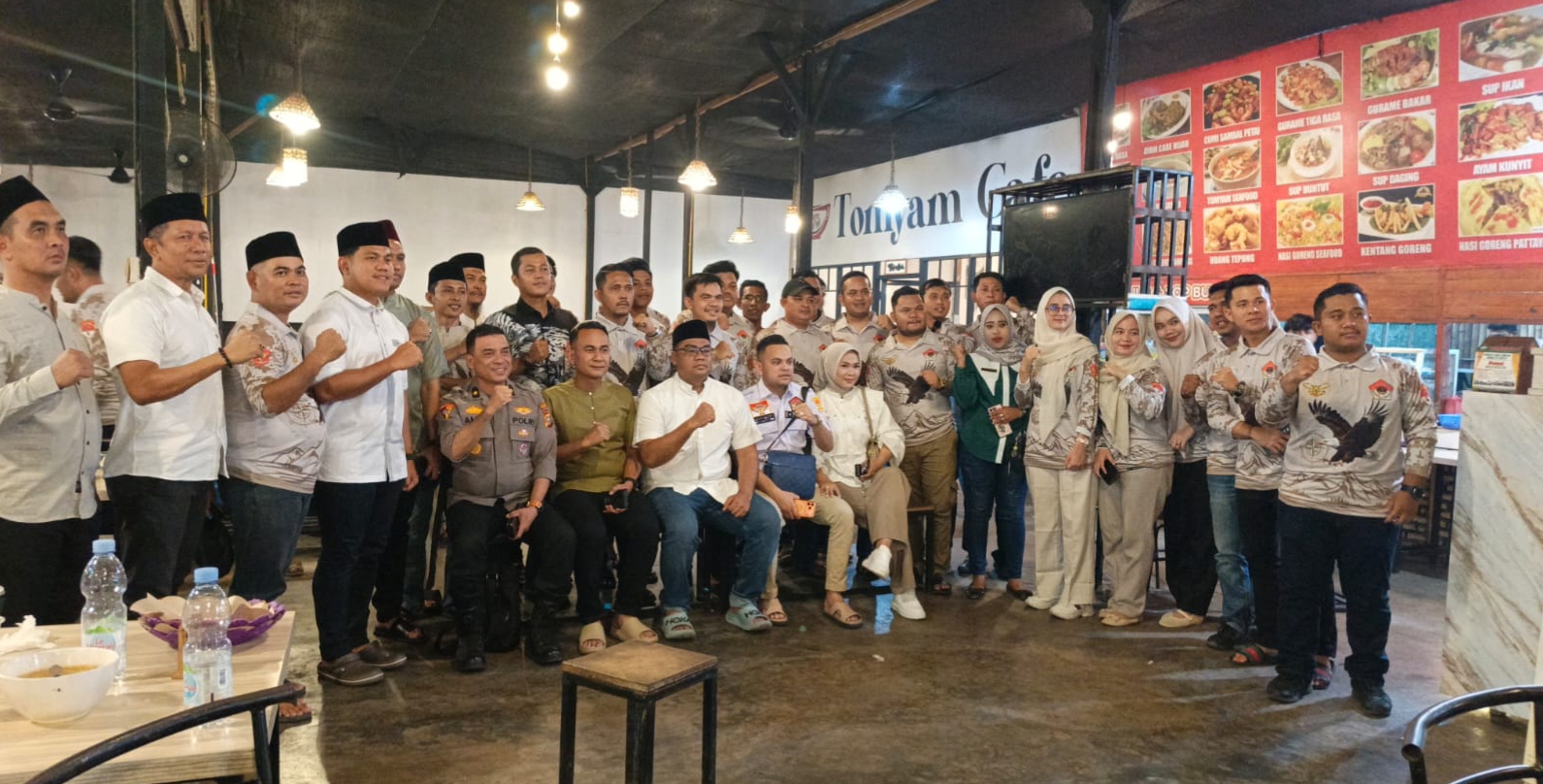 Usai membagikan 1.000 paket takjil dan 1.000 paket sembako kepada masyarakat Kabupaten Kampar menjelang waktu berbuka puasa di Jalan Ayani Bangkinang Kota, Ketua DPP Elang 3 Hambalang Riau, Febriyan Winaldi, melanjutkan kegiatan dengan menggelar acara buka puasa bersama Kapolres Kampar di Cafe Tomyam, Rabu (25/2/2026).
